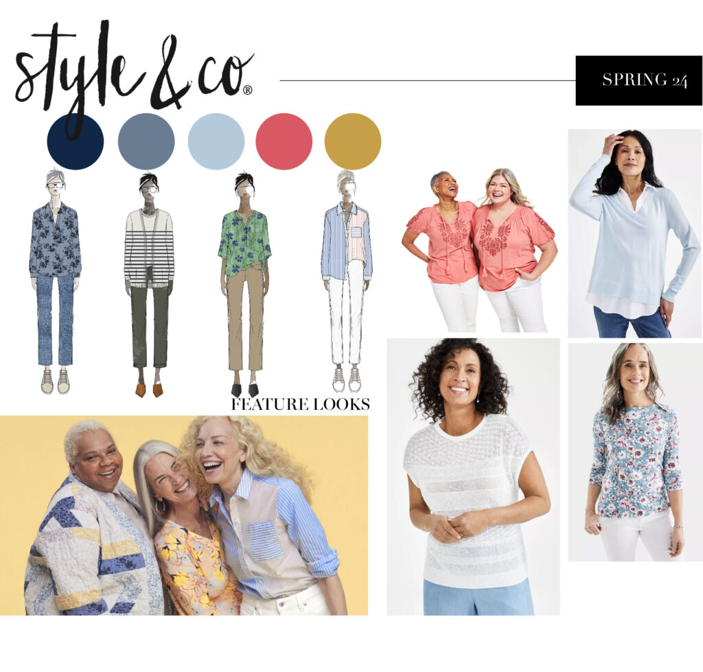 The Style & Co brand prides itself on offering comfortable and effortless style with vibrant color accents. This valued customer demonstrated strong brand loyalty, consistently returning for the styles she adored. Our objective was to refresh her wardrobe with modernized styles while maintaining the core elements she cherished. I led my team to accomplish this by introducing innovative yarn and stitch techniques through multiple development cycles, integrating consumer data and the latest fashion trends to create a harmonious balance of novelty and familiarity.