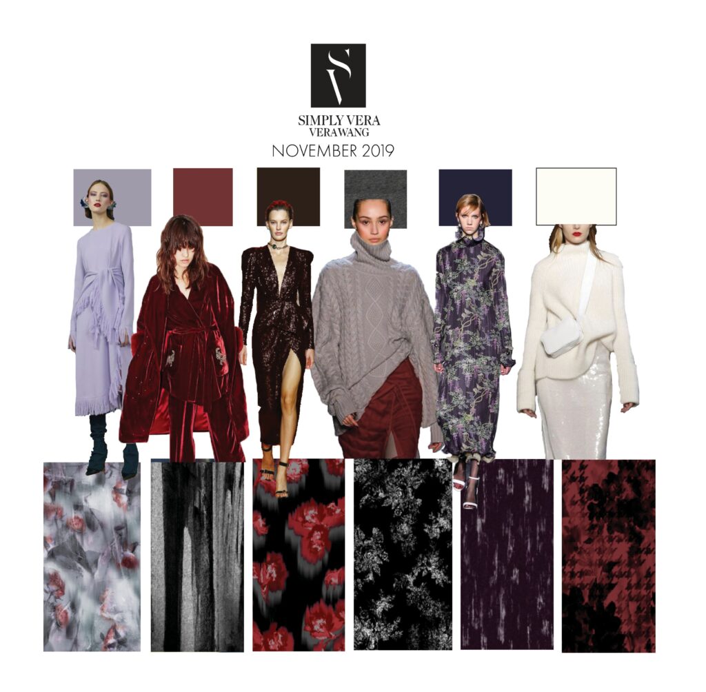 While on the Vera Wang team, I helped to develop all sweaters for the Fall & Holiday 19 seasons. From concept to production, I single handedly researched, sourced and designed the sweater assortment. Below are snapshots of the process from beginning to a few final production shots.